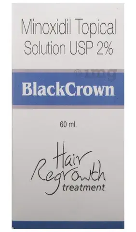 BlackCrown 2% Solution is a medicine used to treat common hereditary hair loss. It can prevent further hair loss and help hair to re-grow. It works by increasing blood flow to the hair follicles on your scalp, which prevents hair cell death and also enhances new hair growth. It is most effective for baldness or thinning at the top of the scalp but less effective at the front or for receding hairline.
