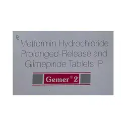 Gemer 2 Tablet PR is a combination of two antidiabetic medicines: Glimepiride and Metformin.Glimepiride is a sulfonylurea which works by increasing the amount of insulin released by the pancreas in order to lower the blood glucose. Metformin is a biguanide which works by lowering glucose production in the liver, delaying glucose absorption from intestines and increasing the body's sensitivity to insulin.