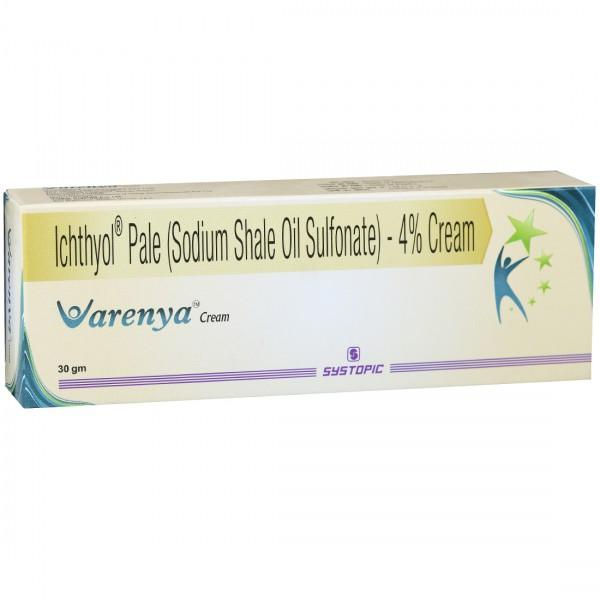 Varenya Cream contains Ichthyol Pale, which is the sodium salt of a pale sulfonated shale oil in an aqueous solution. It works by reducing the oil secretion by the oil glands present on the skin surface. It also has antimicrobial activity that prevents the growth of infectious microorganisms and treats skin infections too. Additionally, it has anti-inflammatory properties that treat irritation and itching in skin disorders.